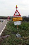 Die außerörtlichen Umleitungsschilder sind zwischenzeitlich wieder aufgestellt, nachdem sie durch den Sturm in der letzten Woche in Mitleidenschaft gezogen wurden.
