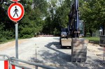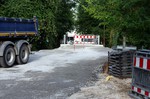 Der Rückbau der Umleitungsstrecke läuft weiter. In dieser Woche wurde die Rampe auf der innerörtlichen Seite der Ersatzbrücke entfernt. Am nächsten Dienstag/Mittwoch