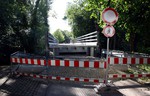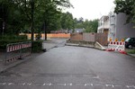 (26./27.06.) kommt dann der Baukran und entfernt die Brücke. Vor der KiTa Herrenwiesenweg sind Absperrungen und Schutzmaßnahmen ebenso entfernt worden. So langsam ergibt sich der Zustand wie zu