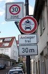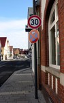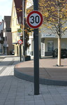 Das schiefe 30-Zone-Schild, was ebenfalls rückgemeldet wurde, ist immer noch schief.