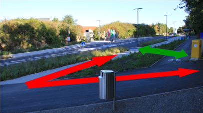 Zwischen Memelweg (Richtung Hülbe) und den Bushaltestellen liegt eine ziemlich spitze Ecke um die man herum muss.