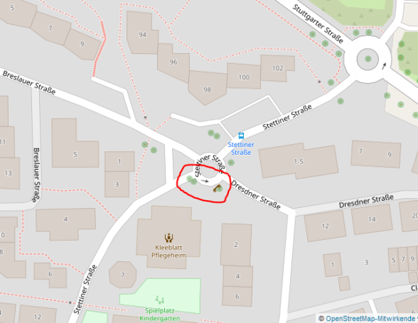 Die Wege im Umkreis der Bushaltestelle Hermann-Essig-Straße herum sind aber geprägt von recht viel Zick-Zack.