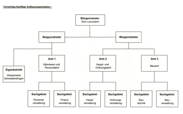 es muss aber auch von der Verwaltung umgesetzt werden. Und hierfür ist der Vorschlag zur Neuorganisation der Verwaltung ausgearbeitet worden. Dieser beinhaltet einen Beigeordneten. Es geht nicht