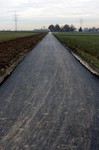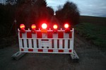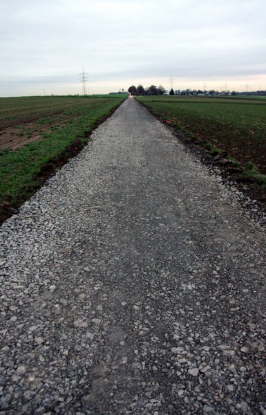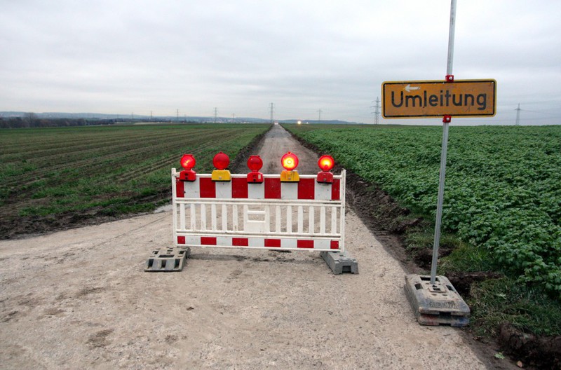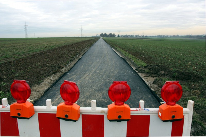 Die Baustelle ist eigentlich auch schon fertig, aber hier stehen noch die Absperrungen. Der Asphalt ist da und der Feldweg ist wieder schön eben.