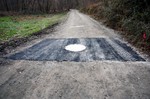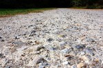 rund 1500m. Der Weg wird aufgefräst, um das Bindemittel mit dem Zusatzstoff NovoCrete einzuarbeiten. NovoCrete ist ein Additiv zum herkömmlichen Portlandzement. Die notwendigen Arbeiten wurden vom