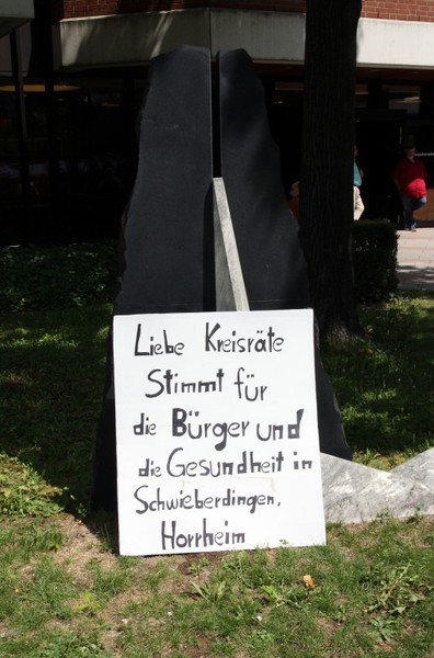 Zuerst ein paar Bilder von einer Demo der --> IG Deponien Schwieberdingen-Horrheim vor dem Landratsamt und ein paar Bilder aus dem Sitzungssaal. Danach folgt ein ausführlicher Bericht zur Sitzung und den Abstimmungen der verschiedenen Anträge.