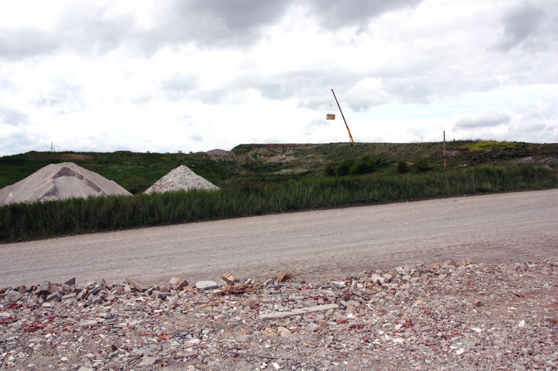 Spektakulär war ein Kran mit einer Gondel auf der Deponie. So konnte man eine sehr guten Rundumblick genießen und gleichzeitig markierte die Gondel auch die finale Höhe der Deponie nach Abschluss der Renaturierung. Ca. 15 Meter kommen am Standort des Krans noch an Höhe hinzu. Es wird ein kleiner Berg entstehen, der zu allen Seiten mehr oder weniger flach abfallen wird. Ein paar wenige Eindrücke sind über die folgenden Bilder gegeben.