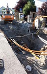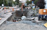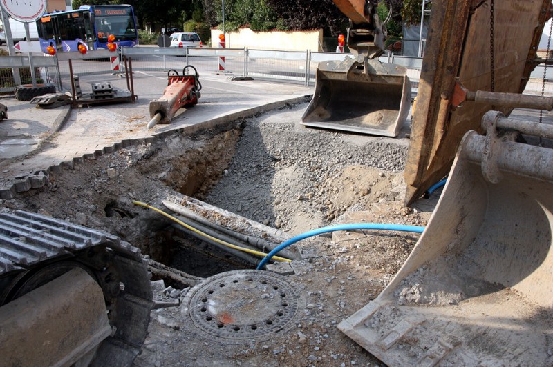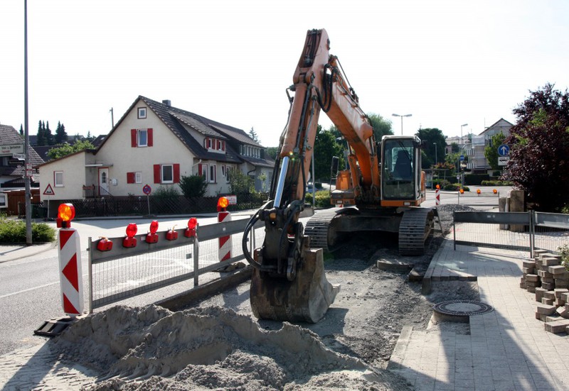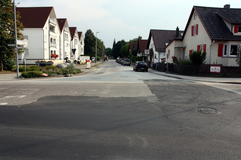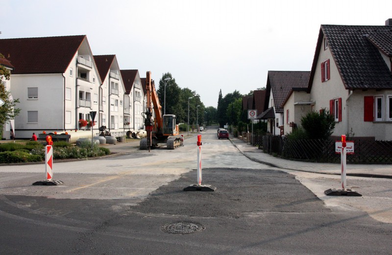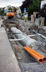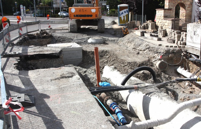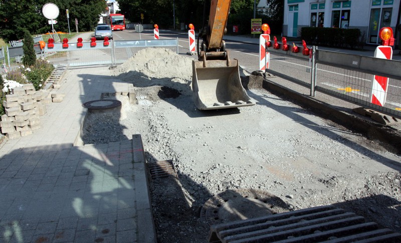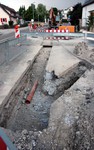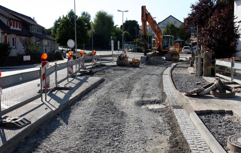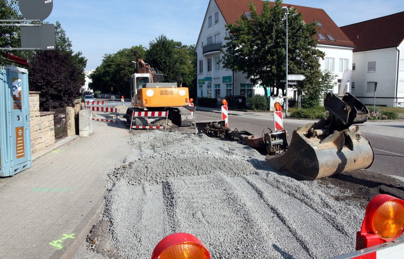 Die Baustelle im Herrenwiesenweg hat sich ein Stück in die Vaihinger Straße verlagert. Vermutlich wurde die zuvor verlegten Leitungen angeschlossen.