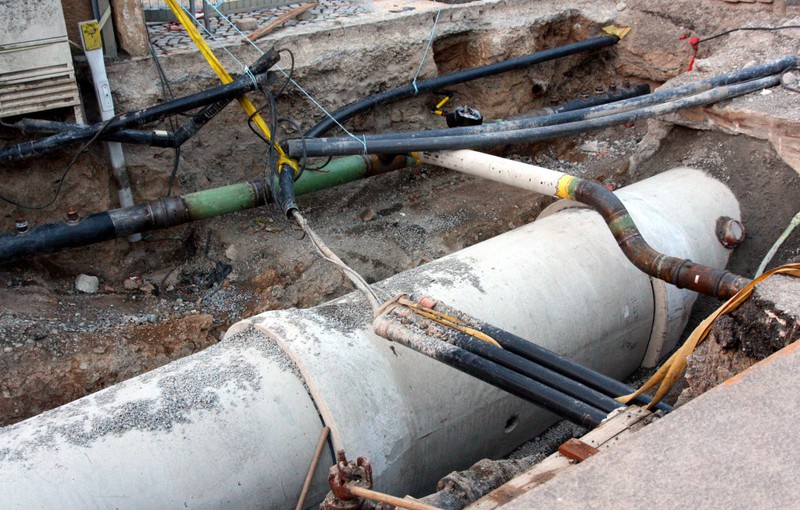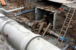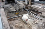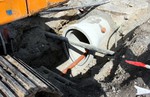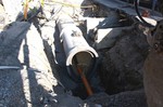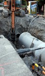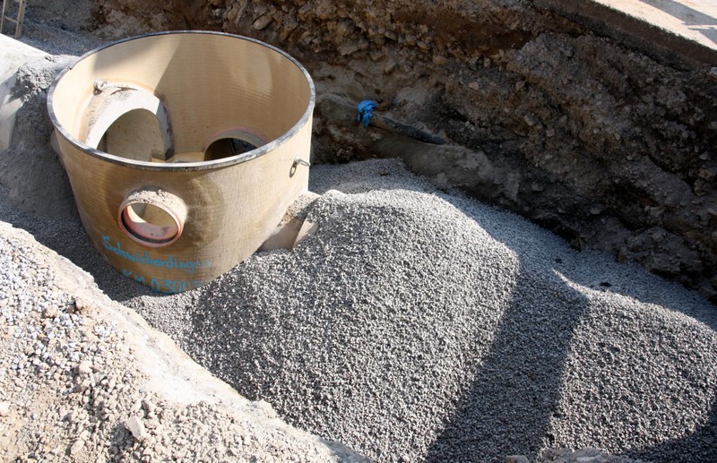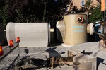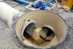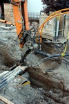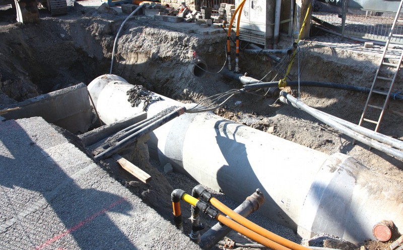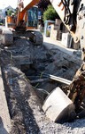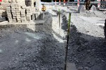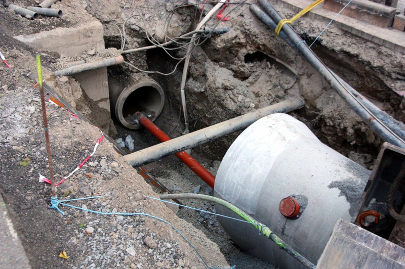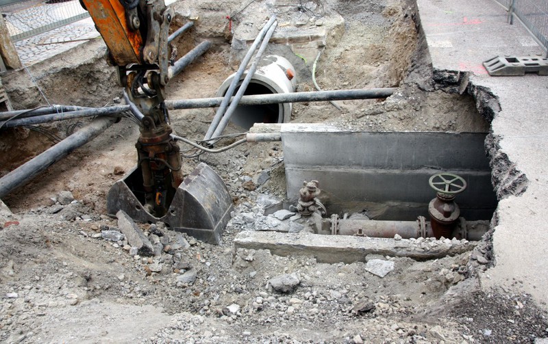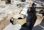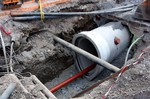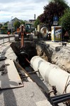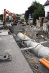 Eiprofil verlegt. Damit die Kanalrohre verlegt werden können, musste letzte Woche wie geplant der Bestandswasserschacht teilweise abgebrochen werden. Auch die Trinkwasserleitung wird in diesem
