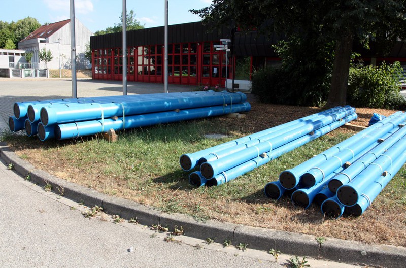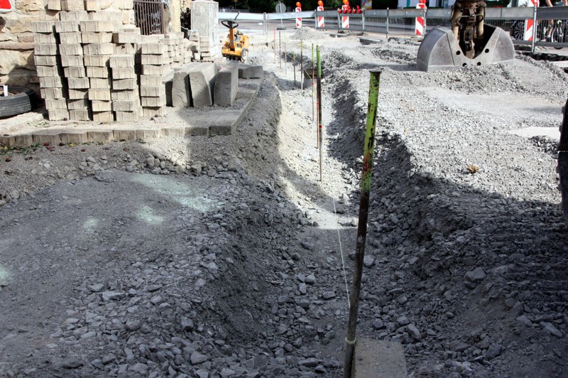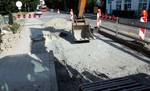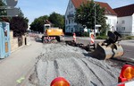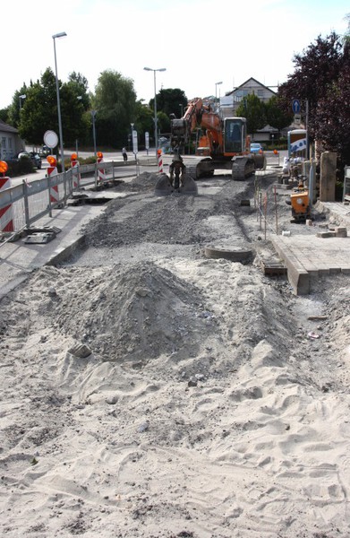 Jeden Tag geht es ein Stückchen weiter. Die Rohre sind wieder verlegt und zudem kamen noch neue Wasserleitungen. Am Ende der Woche war die Baugruppe wieder zugeschüttet. Fehlt nur noch die Teerdecke. Danach geht es in die Bauferien.
