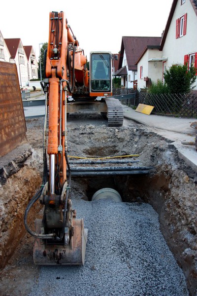 Die Arbeiten zur Anbindung an das Kanalnetz der Gemeinde Schwieberdingen haben in der Vaihinger Straße begonnen. Das Kanalrohr wird im ersten Abschnitt in der Vaihinger Straße als ein sogenanntes