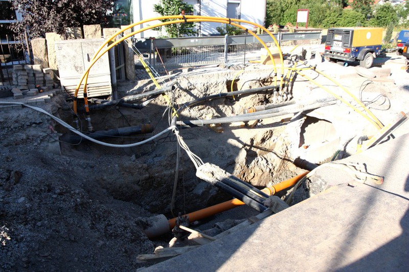 Es gab jeden Tag etwas Neues zu entdecken am Herrenwiesenweg. Es wurden nicht wie vermutet Leitungen angeschlossen, sondern es kommen bereits jetzt schon die großen Kanäle. Die Dimensionen der Teile sind schon enorm.