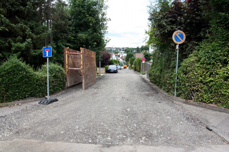 Im Hofpfad sind die Bauferien nun vorüber. Beim zweiten Bauabschnitt wurde bereits die oberste Asphaltdecke abgefräst.