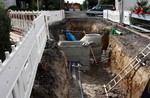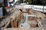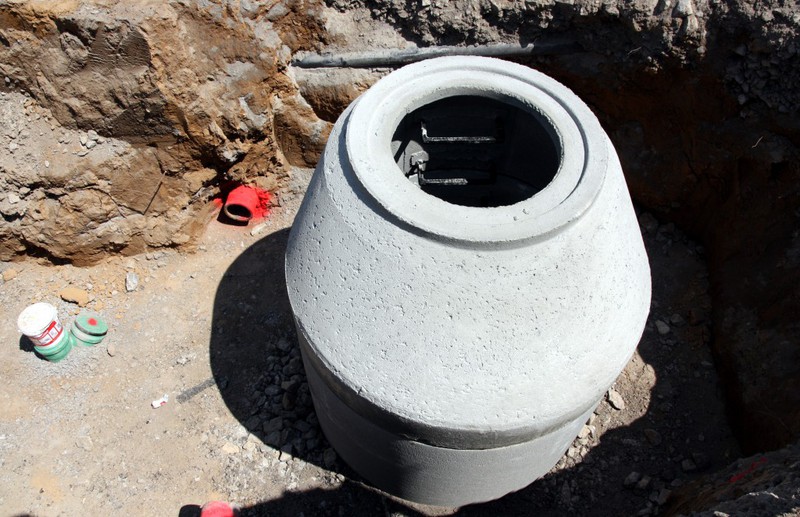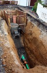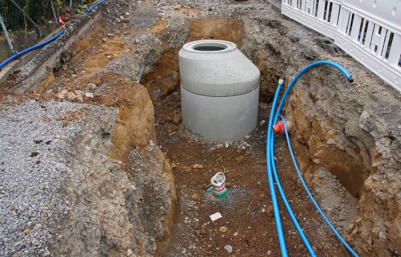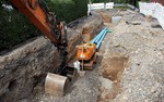 Die Bauarbeiten schreiten rasch voran. In dieser Woche wurden Schächte für den Abwasserkanal und die Wasserleitungen gesetzt.