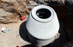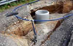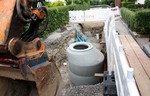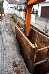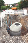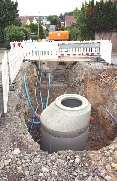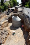 Die Baustelle ist schon ein Stückchen weitergerückt und der nächste Kanalschacht ist gesetzt.