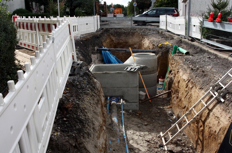 Es werden standardmäßig wie bei jeder Straßenbaumaßnahme Leerrohre verlegt.