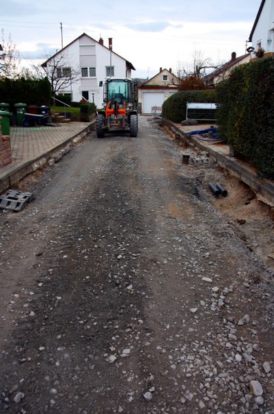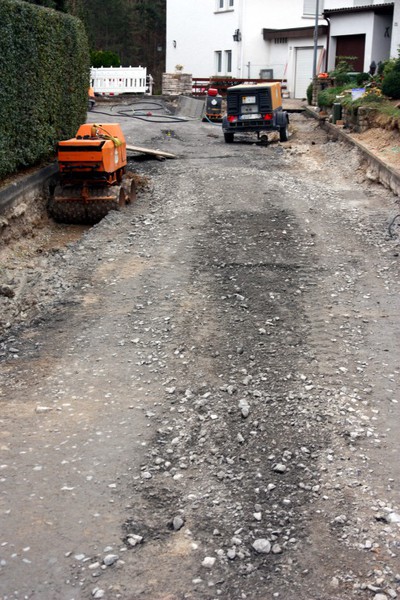 Selbstverständlich. Begonnen wird mit dem Abfräsen des alten Fahrbelags. Dann wird der Kanal ausgetauscht und die Straße neu angelegt.