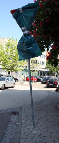 nach der Straßenverkehrsordnung ist das Parken in einem Kreisverkehr nicht erlaubt. Zudem wurden in der Bahnhofstraße, in Höhe der hinteren Zufahrt zum Parkplatz des Rathauses,