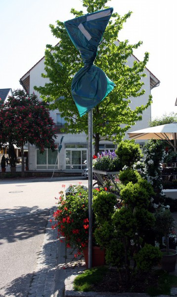 Kreisel über dessen Mitte. Durch den Umbau des Kreisels werden sowohl finanzielle Mittel als auch ökonomische Mittel (z.B. mehr Reifenabrieb beim Überfahren, mehr Feinstaub) aufgewendet, welche aber