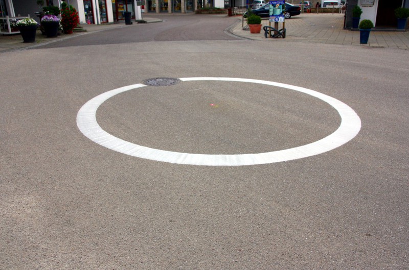 Ab heute ist der Minikreisel fertig. Der Kreis ist gezeichnet, die Schilder stehen. Jetzt muss sich nur noch die Verkehrssituation verbessern.