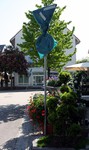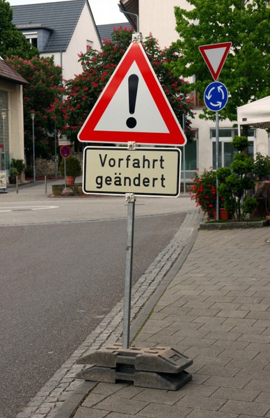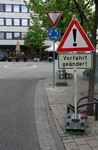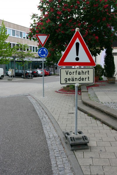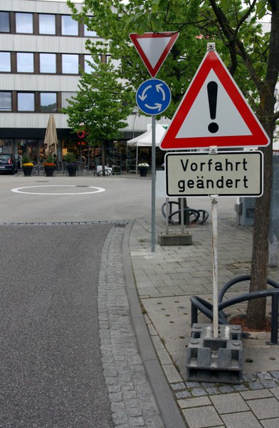 Verkehrszeichen "Kreisverkehr". Diese Umsetzung wird dann ein halbes Jahr beobachtet werden, um den Erfolg der Maßnahme zu überprüfen. Als zweiten
