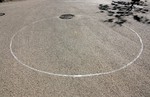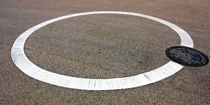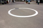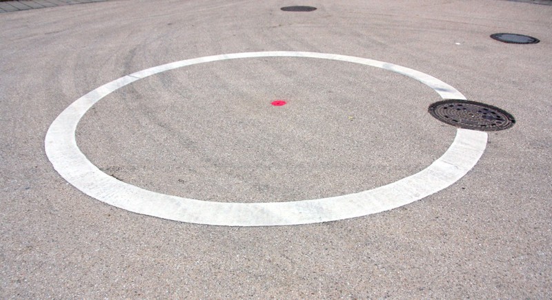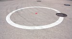 Mitte der Bodenplatte eine Farbmarkierung (durchgezogene Linie) mit 4 m Durchmesser angebracht. Die drei Einfahrten erhalten jeweils das