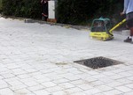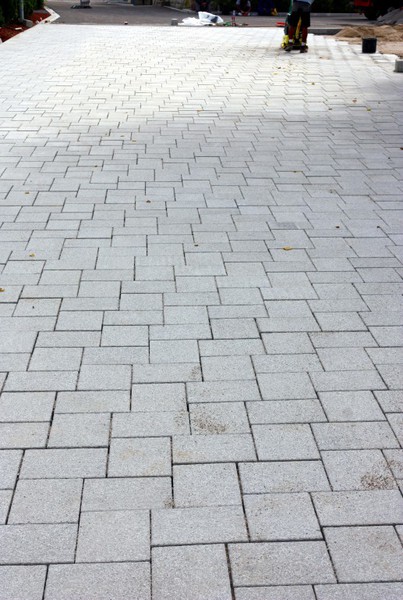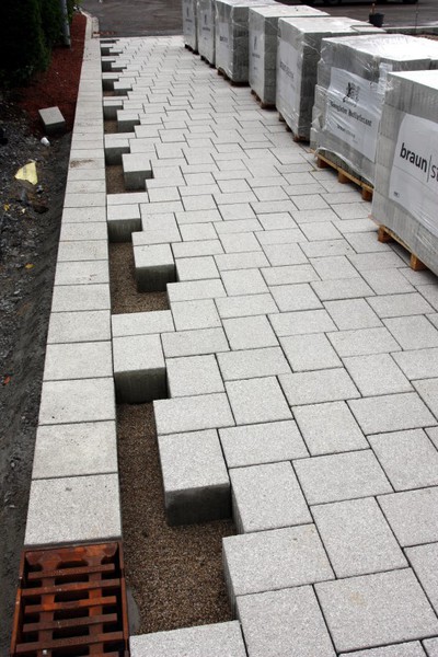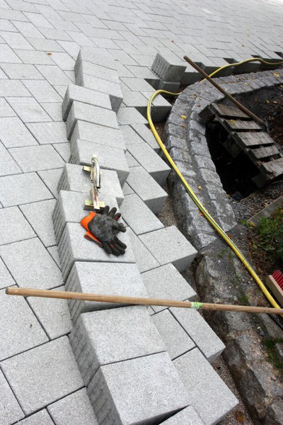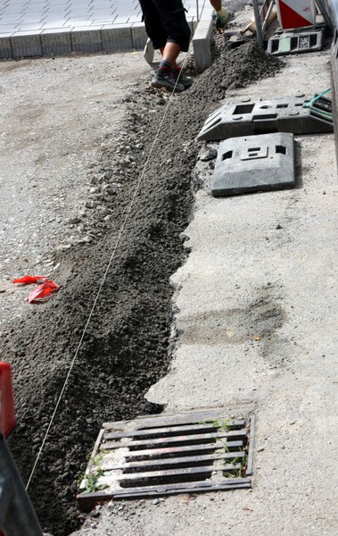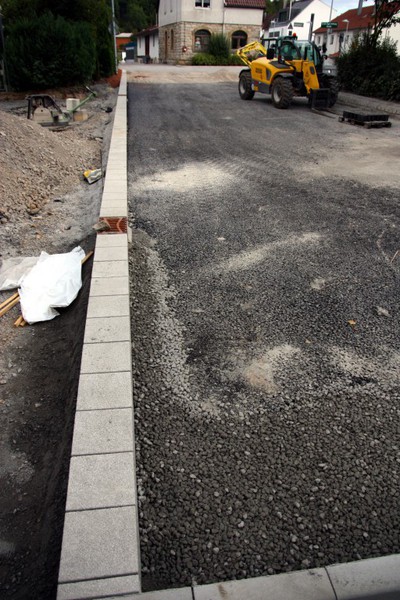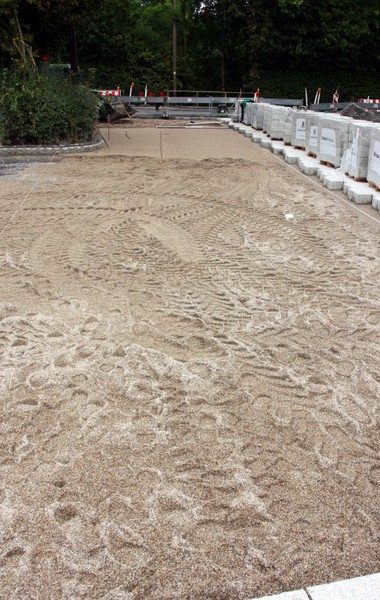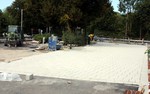 Heute wurde begonnen die Buswendeplatte mit Steinen zu pflastern.
