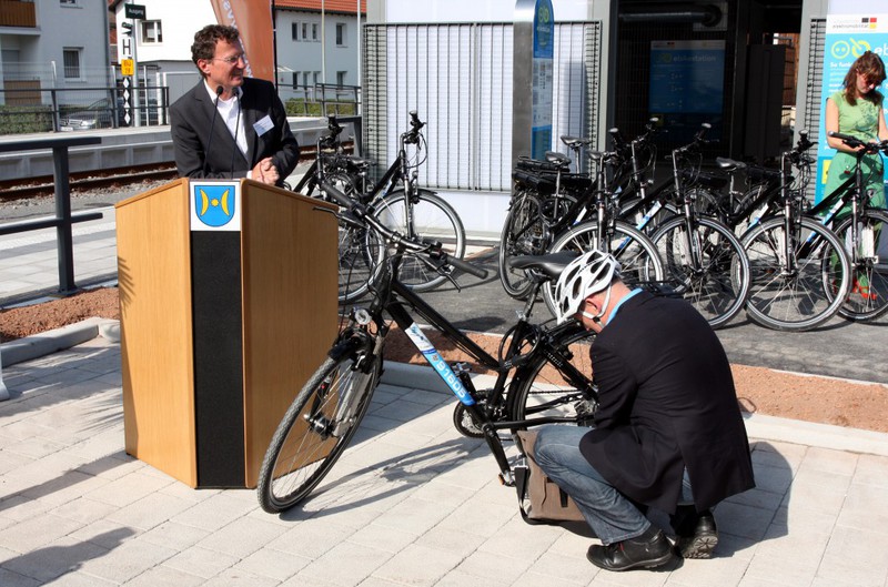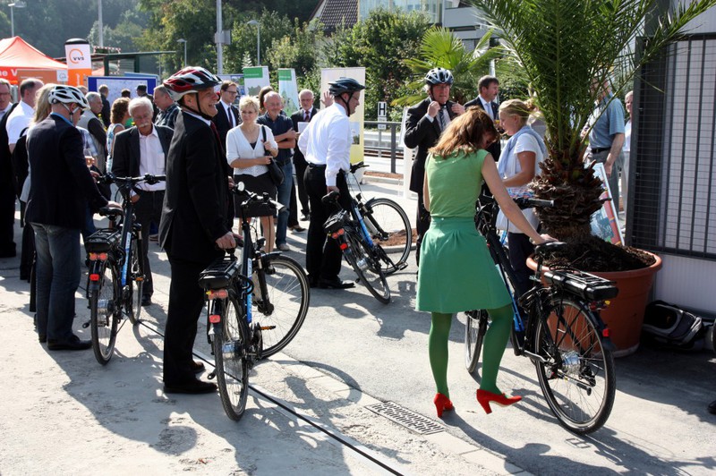 Mit viel Prominenz wurde heute die Pedelec-Station und der Bahnhof eingeweiht (Obwohl die Bauarbeiten am Bahnhof i.B. an der Buswendeplatte wetterbedingt noch nicht abgeschlossen sind).