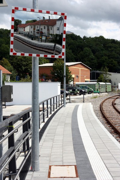 Fahrzeuggeschwindigkeiten zu erwarten sind. Da der Bahnhof auch ein Aushängeschild der Gemeinde ist, sei auf eine optisch schöne Gestaltung zu achten.