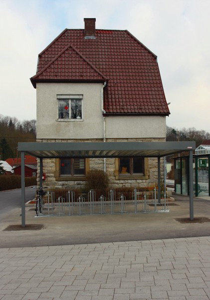 Durch die Aufstellung einer Unterstellmöglichkeit für Fahrräder ist nun die Neugestaltung des Bahnhofes abgeschlossen. Es hat etwas länger gedauert, doch nun ist großer überdachter Fahrradständer vorhanden. Fehlen nur noch die Fahrräder...