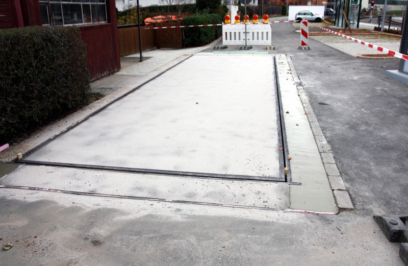 Die Sanierung ist abgeschlossen. Die Absperrung ist entfernt und die Waage kann wieder befahren werden.