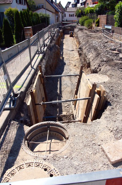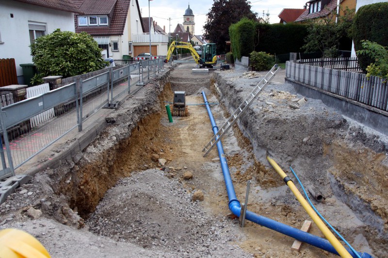 Die Bauarbeiten in der Rosenstraße gehen zügig voran. Der erste Kanalabschnitt von der Kirchstraße bis zum Finkenweg, mit einer Länge von 60 Metern, ist bereits fertiggestellt. Die Hausanschlussleitungen werden in den nächsten Tagen neu angeschlossen. Auch die Trinkwasserleitung wurde in einem Teilbereich verbaut. Die Notversorgung für Trinkwasser bleibt dort bis zur Fertigstellung der Einbindung in die Kirchstraße weiterhin bestehen. Der Kanal und Wasserleitungsgraben wird in diesem Abschnitt in den nächsten Tagen wieder verfüllt. Danke an die betroffenen Anwohner, dass Sie uns Verständnis für die notwendigen Bauarbeiten entgegenbringen.