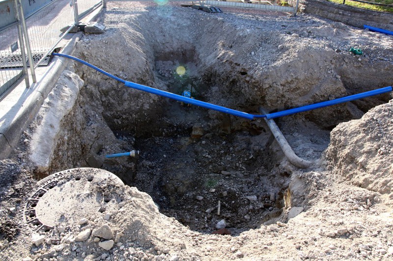 die zu großen Wasserverlusten und Schäden geführt haben. Der Straßenunterbau mit Fahrbahnoberfläche und Gehwege wurden im Anschluss wiederhergestellt.