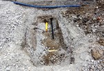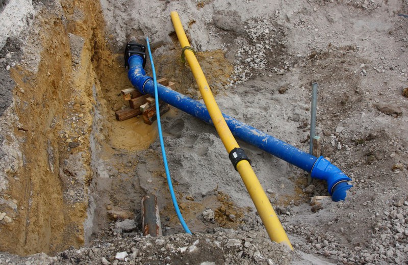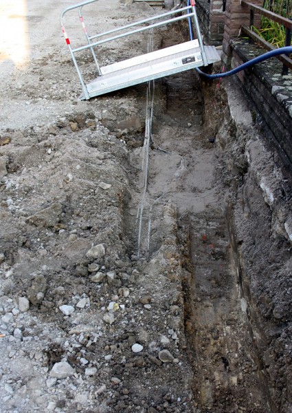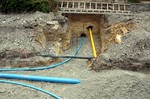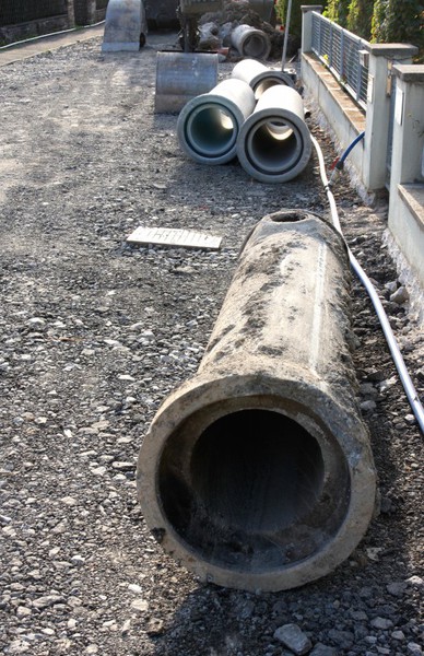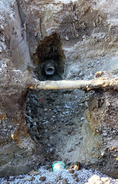 Nachdem das erste Stück des neuen Abwasserkanals verlegt ist folgt eine Etage höher die neue Wasserleitung.