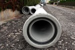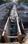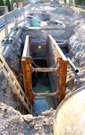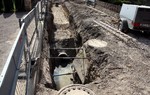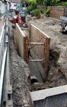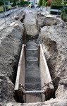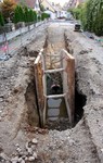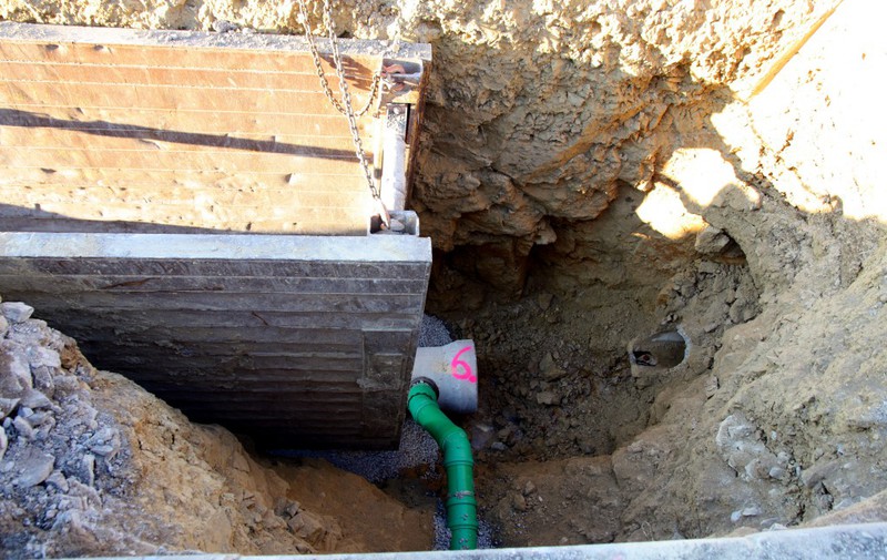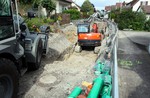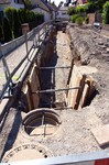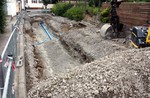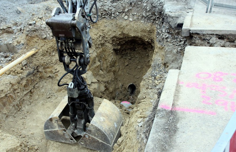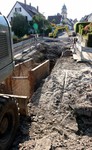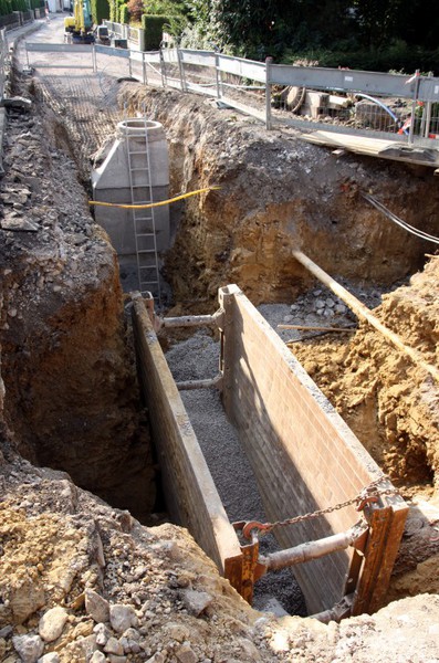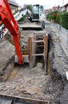 Der alte Kanal wird nun ausgebaut und die neuen Rohre verlegt, inklusive massivem Baggereinsatz.