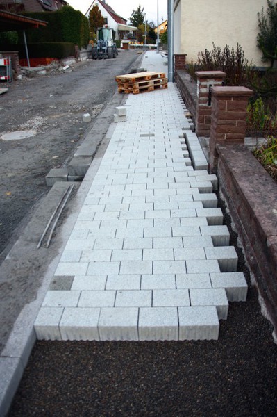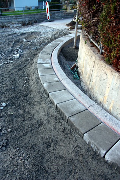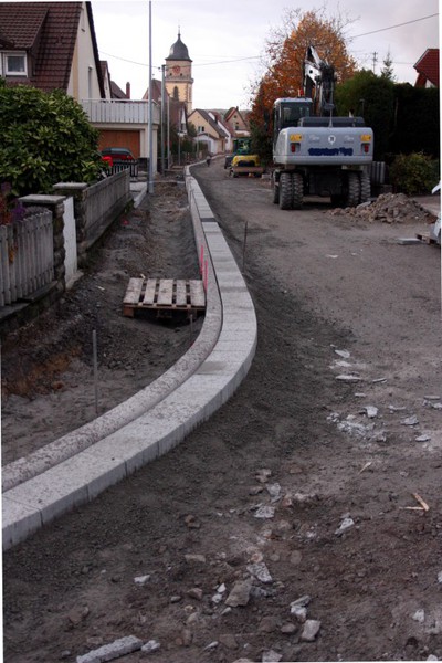 Das Setzen der Randsteine nimmt auch so langsam ein Ende. Die Fahrbahn wurde ebenfalls schon aufgefüllt. Demnächst kommt der Asphalt.
