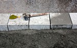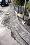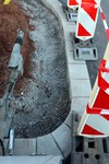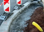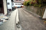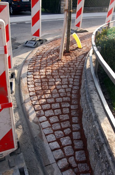Der Gehweg kommt. Die Randsteine sind auf ganzer Länge der Rosenstraße angebracht worden. Und es gibt Platz für einen Baum...
