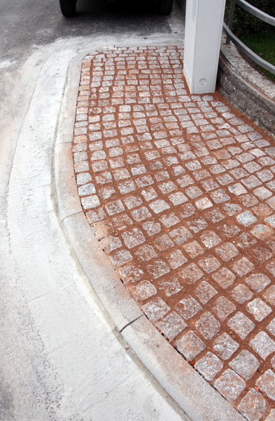 Der Gehweg hat in dieser Woche sein Pflaster bekommen. Anhand der Zugänge zu den Grundstücken erkennt man zudem, dass das Niveau der Rosenstraße künftig höher liegt als bisher.