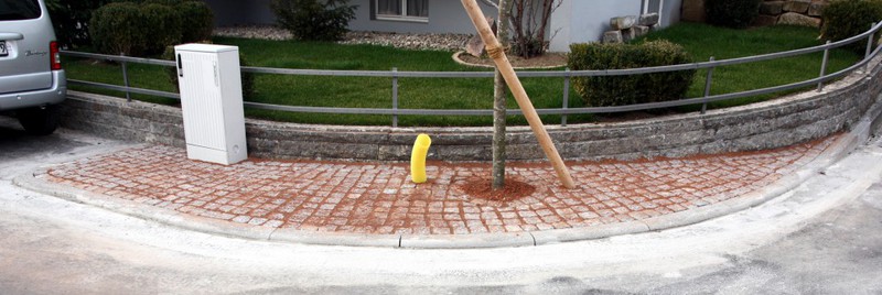 Die neuen Randsteine sind nun gesetzt. Die Steine sehen aber ganz normal aus für eine "Sonderanfertigung", wie es in der Gemeinderatssitzung am 21.12.2017 hieß. Es wurde bereits vor den Bauarbeiten angesprochen, dass es an dieser Stelle eng werden wird, gerade beim Ein- und Ausfahren von benachbarten Grundstücken. Weshalb überhaupt die hohen Randsteine gesetzt wurden, bleibt eine offene Frage. Diese Nacharbeit hätte vermieden werden können. Das Ergebnis ist hingegen ordentlich. Wenn der Baum zudem ab und zu etwas Wasser bekommt wird diese Ecke grün.