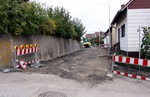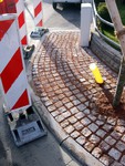 Die neue Straßenhöhe hat sich in dieser Woche durch ein Gespräch mit einem Arbeiter aufgelöst. Das Niveau wurde erhöht, um durchgängig die geforderte Breite des Gehwegs zu gewährleisten.