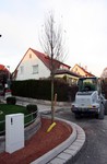 Wie bereits angekündigt wird die Einfassung des Baumes an der Ecke zum Finkenweg geändert. Es sollen neue Randsteine gesetzt werden. In dieser Woche begannen hier die Arbeiten und es wurden die bisherigen Randsteine entfernt.