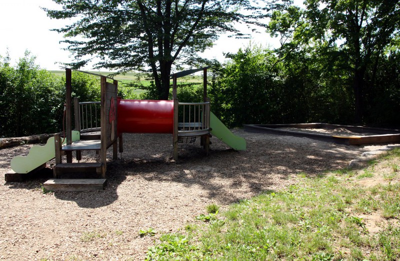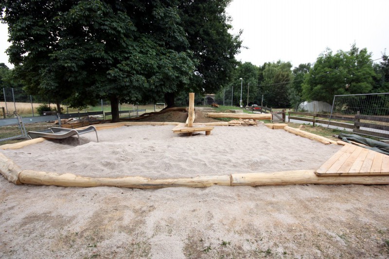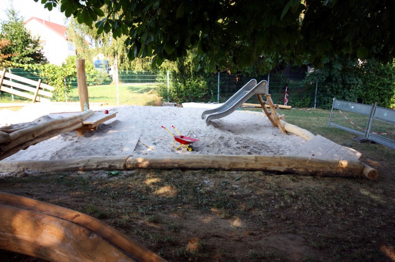 Der Bereich für die Kleinen mit Sandkasten und erneuerten alten Spielgeräten ist nun auch fertig.