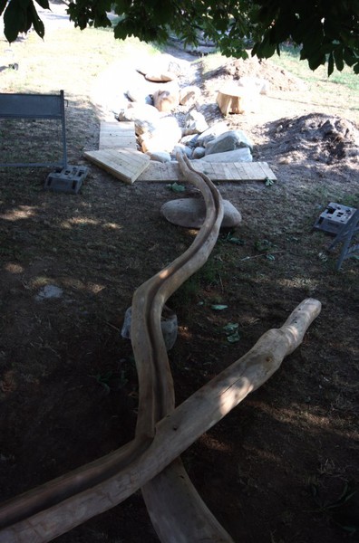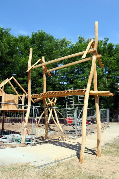 Die neuen Spielgeräte bekommen so langsam ihre Form. Es geht weiter am Kästlesgraben.