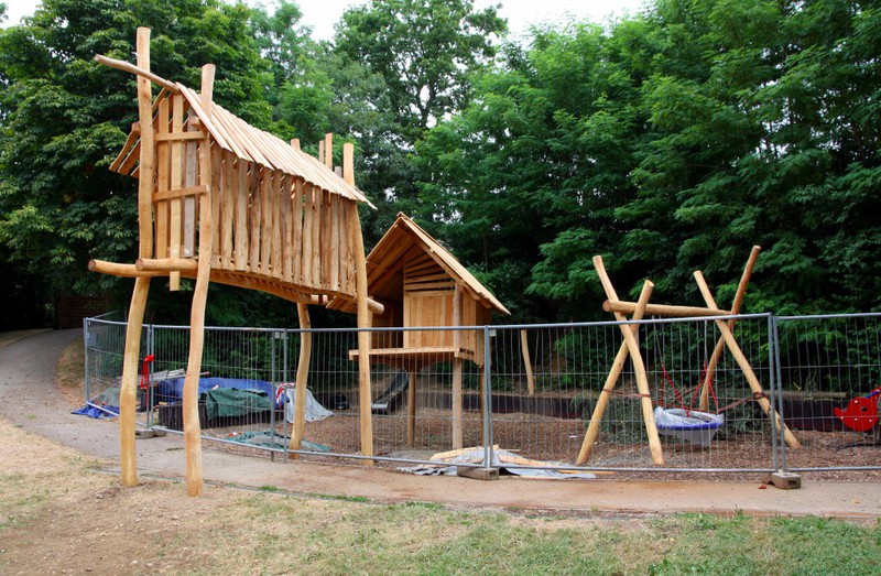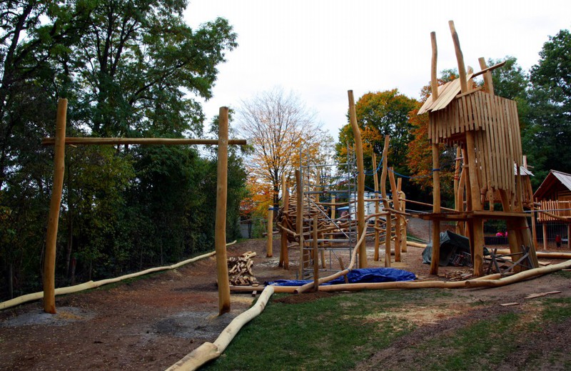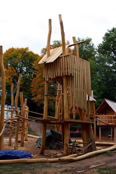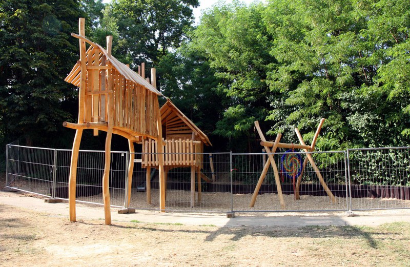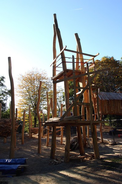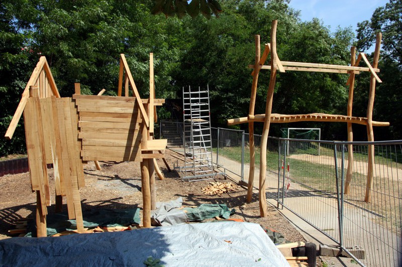 Die Holzhäuser wachsen und die Wasserläufe sind schon im Ansatz erkennbar. Hier die neuesten Bilder von den beiden Spielplätzen