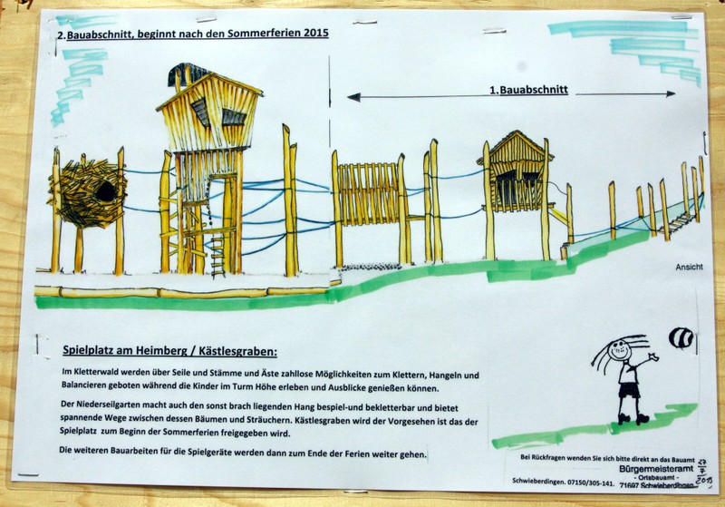 Bürgermeister Lauxmann hat eine ausführliche Darstellung der Details unterbunden. Die Fa. Terrain Spielplatzbau gab lediglich einen groben Detailüberblick. Im Kästlesgraben gibt es einen 8,5 m