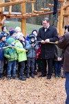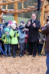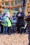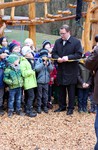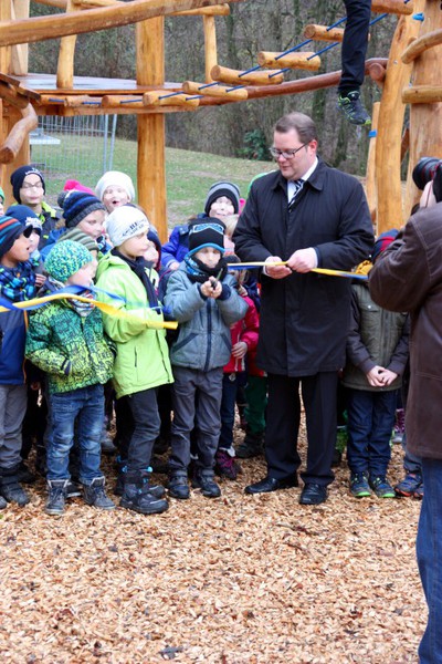 Auf dem Spielplatz Kästlesgraben wurden am Mittwochnachmittag die beiden umgestalteten Spielplätze (Kästlesgraben und Scheerwiesenweg) offiziell eingeweiht. Der Regen hatte auch eine kurze Pause eingelegt, so dass zusammen mit einer Gruppe des Horts das Einweihungsband durchschnitten werden konnte. Zuvor hat Bürgermeister Lauxmann lobende Worte für die Neugestaltung der Spielplätze gefunden. Wie man es den Bildern ansieht, findet der neue Spielplatz großen Gefallen.