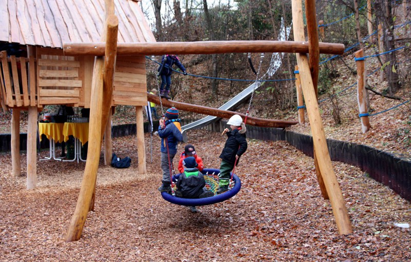 Rutsche gebaut. Über eine Wackelbrücke die zu einem „Nest“ führen wird, besteht dann auch hier die Möglichkeit, sich wohl zu fühlen und die Umgebung aus einer anderen Perspektive zu erleben. Sie
