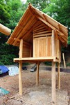und Ausblicke genießen. Der sogenannte Kobel bietet im Inneren - genauso wie das bereits gebaute Spielhaus - eine Rückzugsmöglichkeit. Für die Kleinsten wird ein neuer Sandspielbereich mit einer