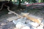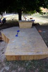 Es tut sich was an den Spielplätzen. Das Robinienholz ist angeliefert und in Form gebracht.