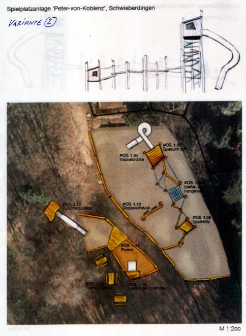 Spielplätze. Aus diesem Pool wurde der Spielplatz im Norden von Schwieberdingen am Ende der Peter-von-Koblenz-Straße ausgewählt, nachdem die letzten beiden Spielplätze im Osten und Westen der